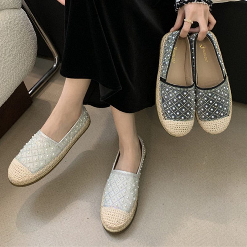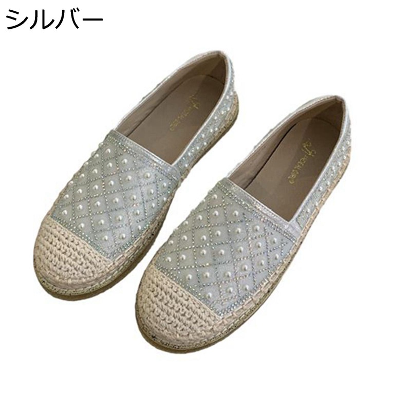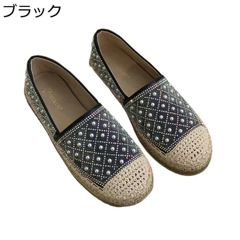 レディース スリッポン 春夏 エスパド 22.5 cm 23.0 cm 23.5 cm 24.0 cm 24.5 cm 25.0 cm シルバー ブラック