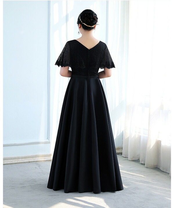 ロングドレス 演奏会 黒 袖付き 上品 大人
