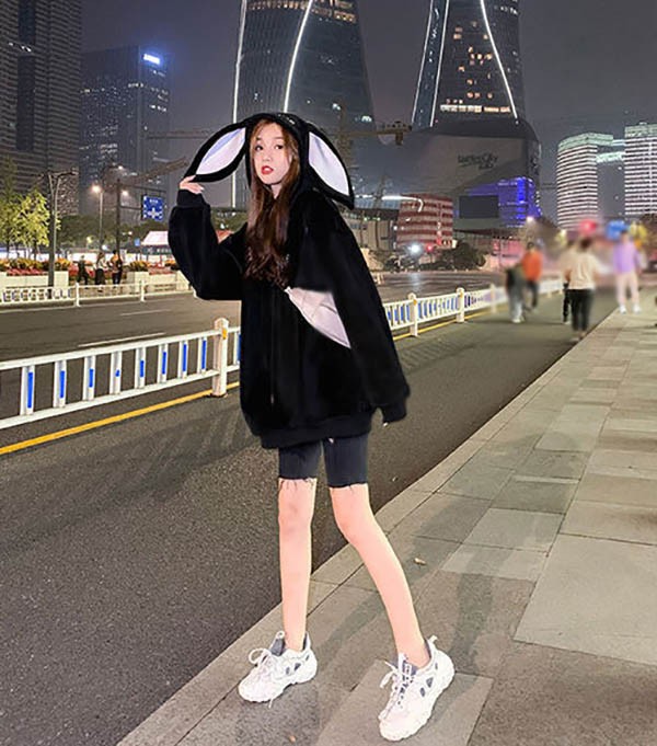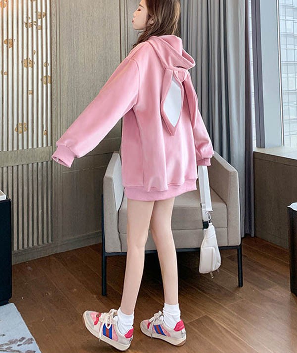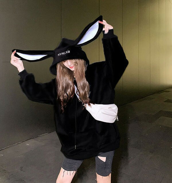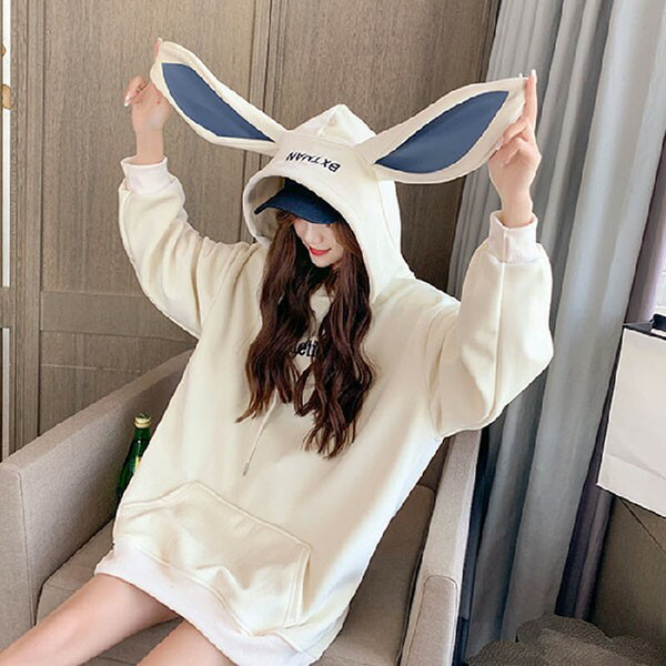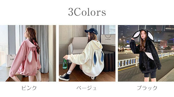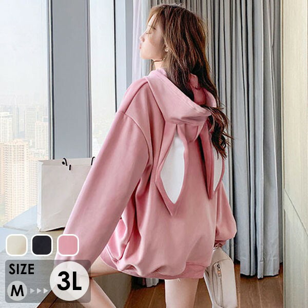 うさ耳 パーカー レディース うさぎ トップス パーカー 新作 ピンク ブラック ベージュ M L 2L(XL) 3L(2XL)