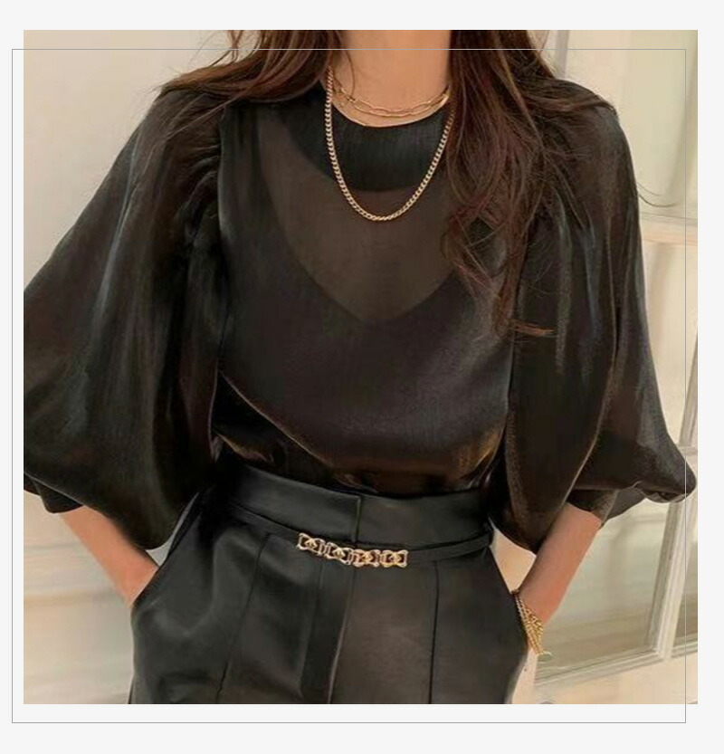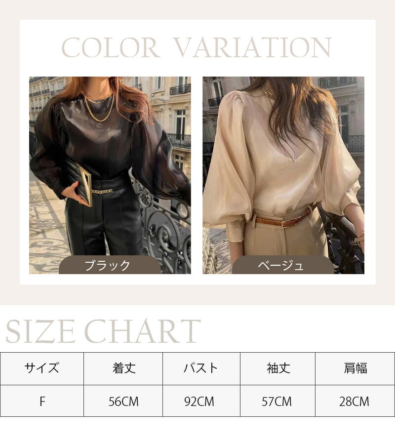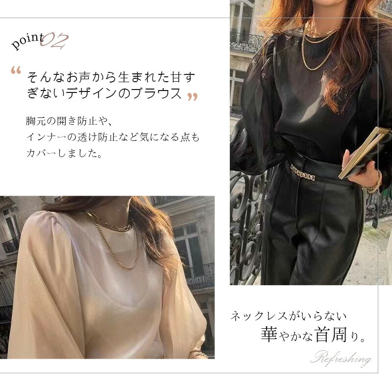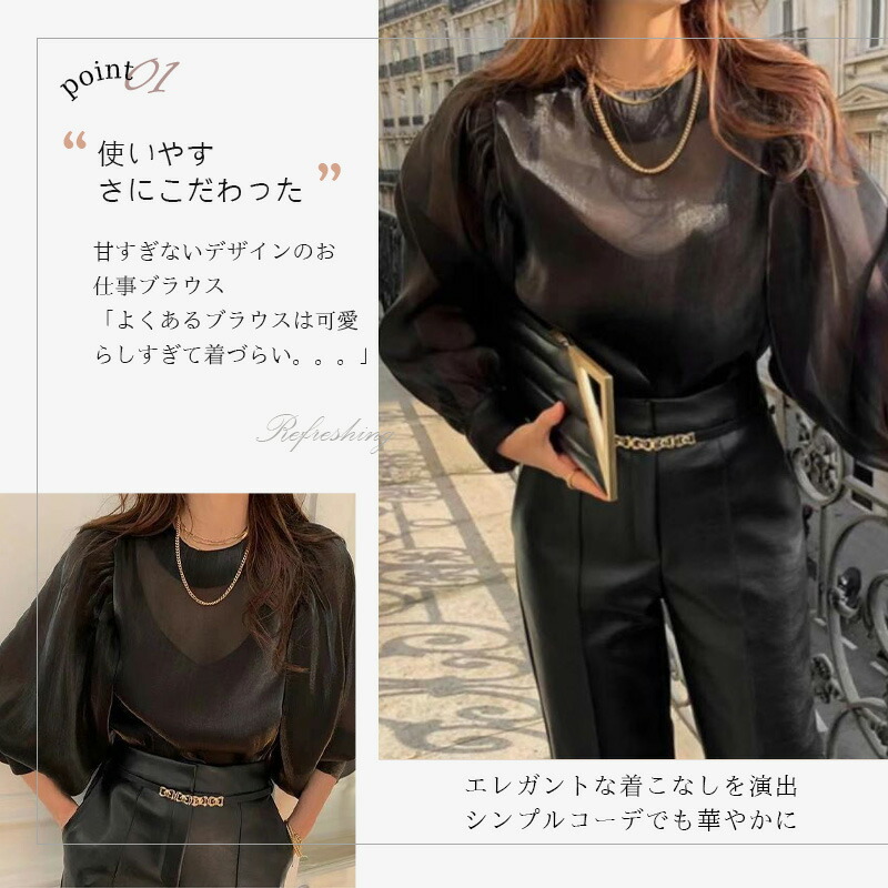 シフォンブラウス シアーブラウス ボリューム袖