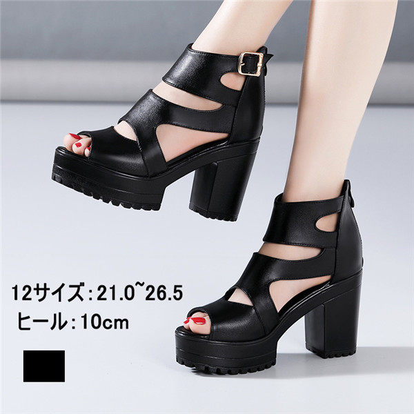サマーブーツ 厚底サンダル ブーツサンダル レディース 黒 歩きやすい 着心地よい ヒール10 太ヒール ベルト 大きいサイズ コンフォートサンダル ハイヒール ストーム 靴 女性 大人 小さいサイズ