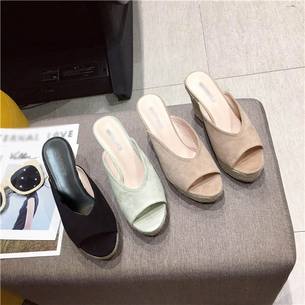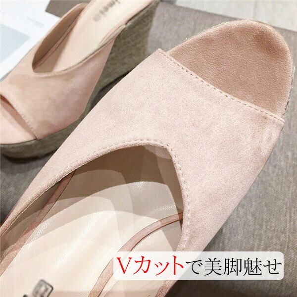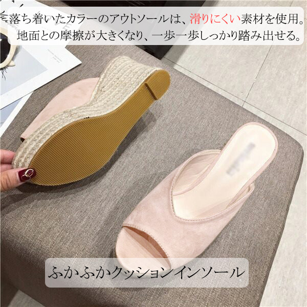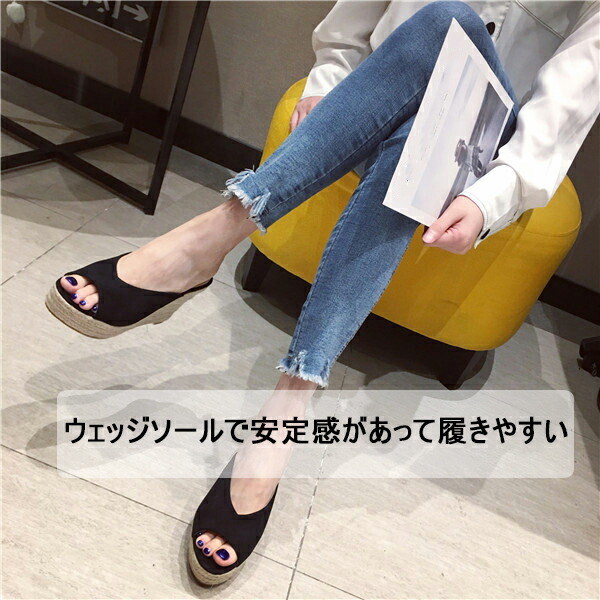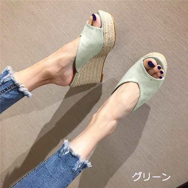 ジュートサンダル 厚底サンダル ウェッジソール レディース 美脚効果 歩きやすい 疲れにくい かかとなし つっかけ オープントゥ サンダル 厚底靴 ジュート 春夏 きれいめ 旅行 黒 緑 2 ブラック