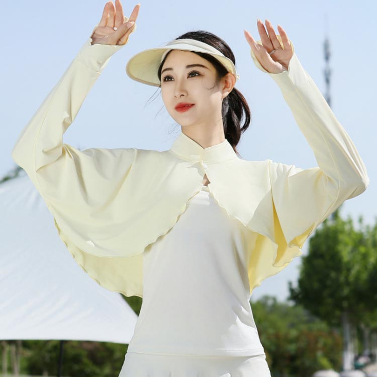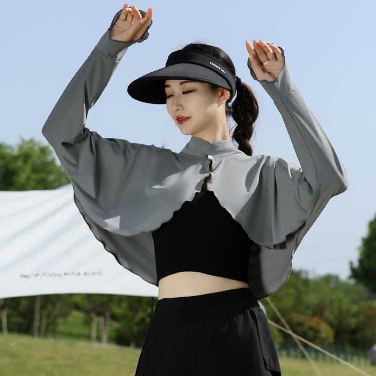 立ち襟 ラッシュガード ケープ 裾フリル パーカー 指穴 UPF50+ 長袖 可愛い UV ゆったり 冷感 着る トップス 体型カバー ボレロ 吸汗 速乾 日焼け防止 スポーツ ゴルフ U 服