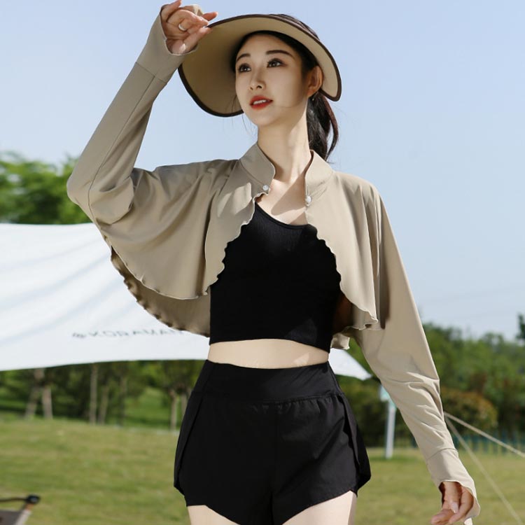 水着のコーデだけでなく、旅行、山登りなどの普段使いや、トレーニング、ランニングなどの陸上スポーツなど屋外での使用に最適なUVカットです。