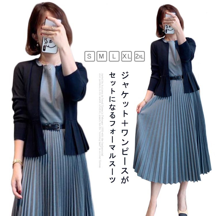 ママスーツ ワンピーススーツ レディース フォーマルスーツ スーツ 2点セット ジャケット 母親 セットアップ 上品 通勤 入園式 結婚式 入学式 卒業式 大きいサイズ 七五三 プリーツワ 女性