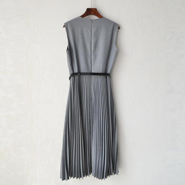 細かいプリーツと高め位置の切り替えによる縦長効果でスタイルアップも叶う。