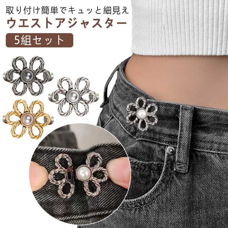 5組セット 調節 ピン 調整 バックル アジャスター ジーンズ ウエストアジャスター ウェスト調整アジャスター クリップ ウエスト調整ボタン ズボン 縮める 金具 リボン くま ウエス 花