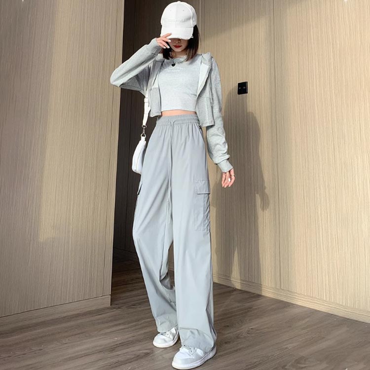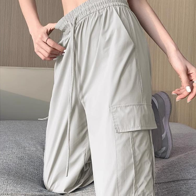 春夏 作業ズボン アイスシルク 無地 レディースファッション 続々登場 ブラック グレー オフホワイト S M L XL 2XL