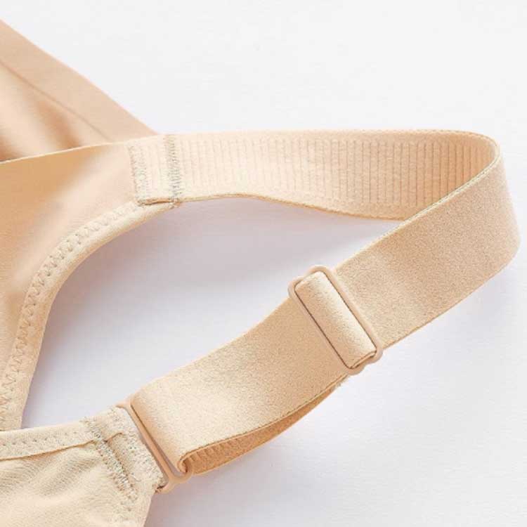 なめらかなでソフトなストレッチ素材を使用したノンワイヤーブラジャー。 適度なホールド感で、バストの横流れを抑えつつも、 締め付けのない、ソフトな着け心地。