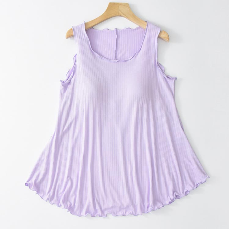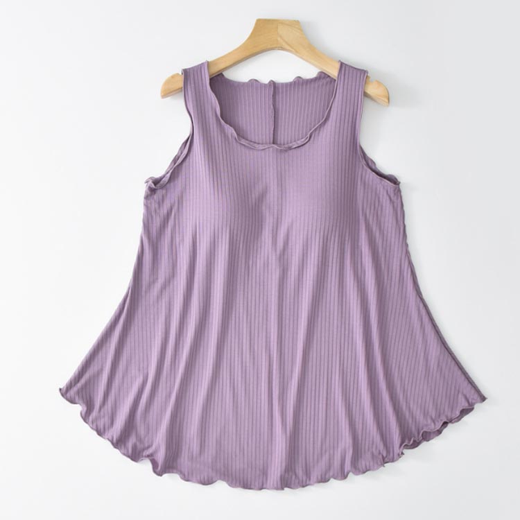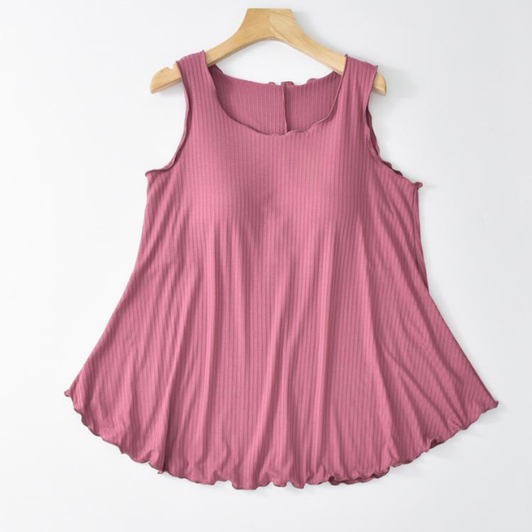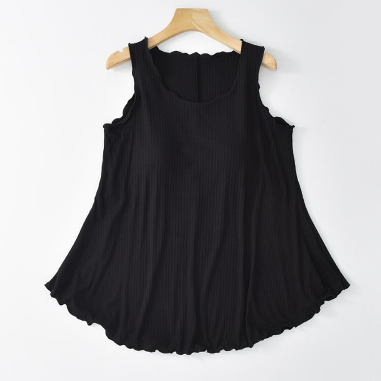 ルームウェア トップス チュニック タンクトップ レディース リブ カップ付き 部屋着 フレア裾 ゆったり ゴム無し 袖なし 袖無し 締め付けない フリル インナー 夏 前のみ カップ付