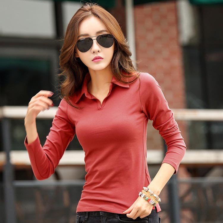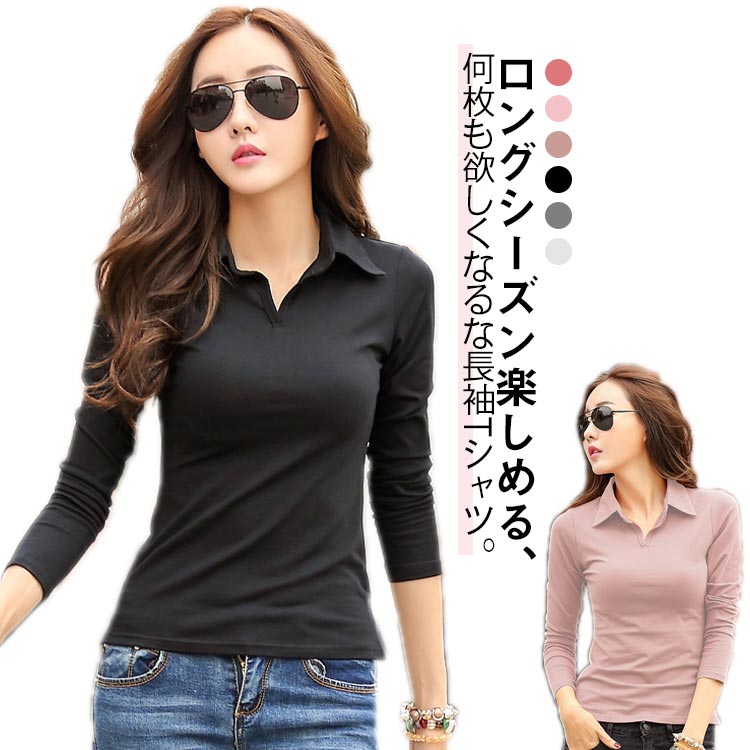 インナーシャツ レディース 長袖 ポロ トップス Tシャツ カットソー 通販 ブラック グレー ピンク ホワイト レッド スイカレッド S M L XL 2XL 3XL