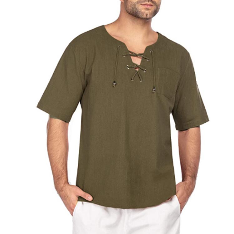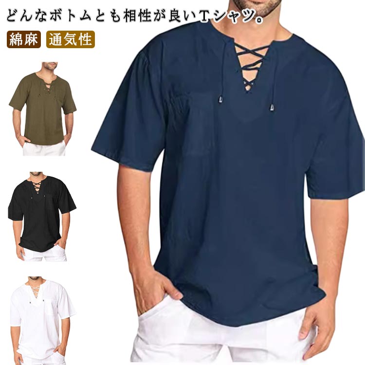メンズ 夏 ヘンリーネック 通気性 薄手 Tシャツ 無地 リネンシャツ カットソー リネン 風 シャツ 綿麻シャツ カジュアル キレイめ 半袖Tシャツ ティーシャツ