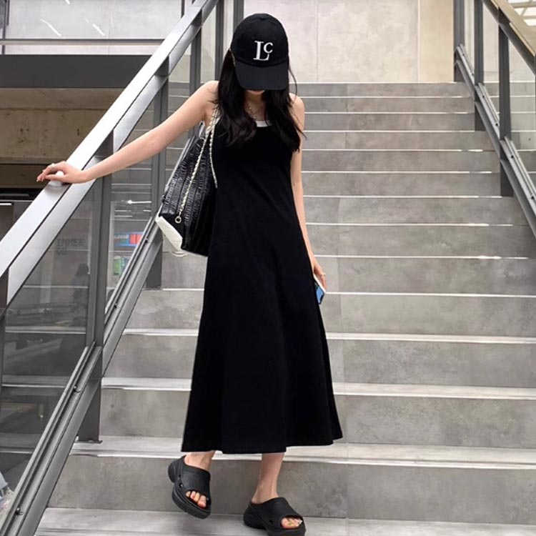 カップ付き ワンピ 夏 ノースリーブ レディース 春 ワンピース 秋 Aライン ダブルストラップ ロングワンピース タンクワンピ ルームワンピース 抜け感 カジュアル キャミワンピ 大人