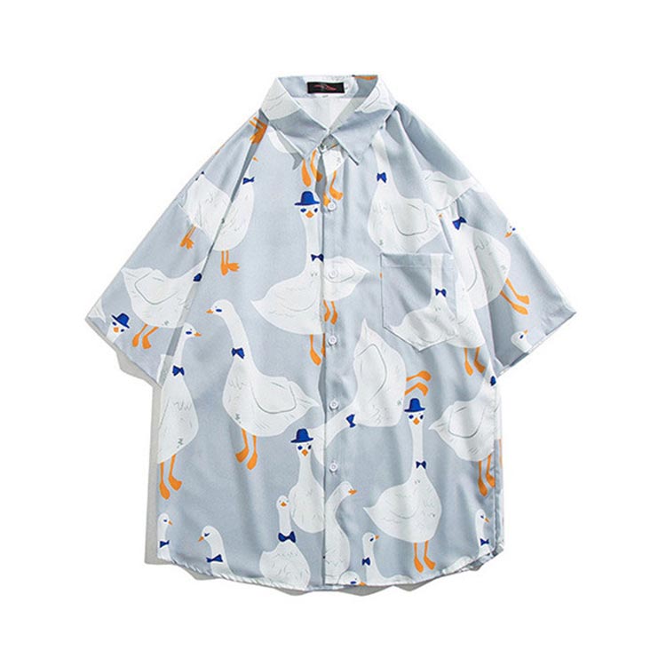 半袖シャツ 夏服 メンズ 原宿系 アヒル柄 アロハシャツ 襟付きシャツ かわいい カジュアルシャツ 海 半袖 シャツ 柄シャツ ファッション リゾート 開襟シャツ