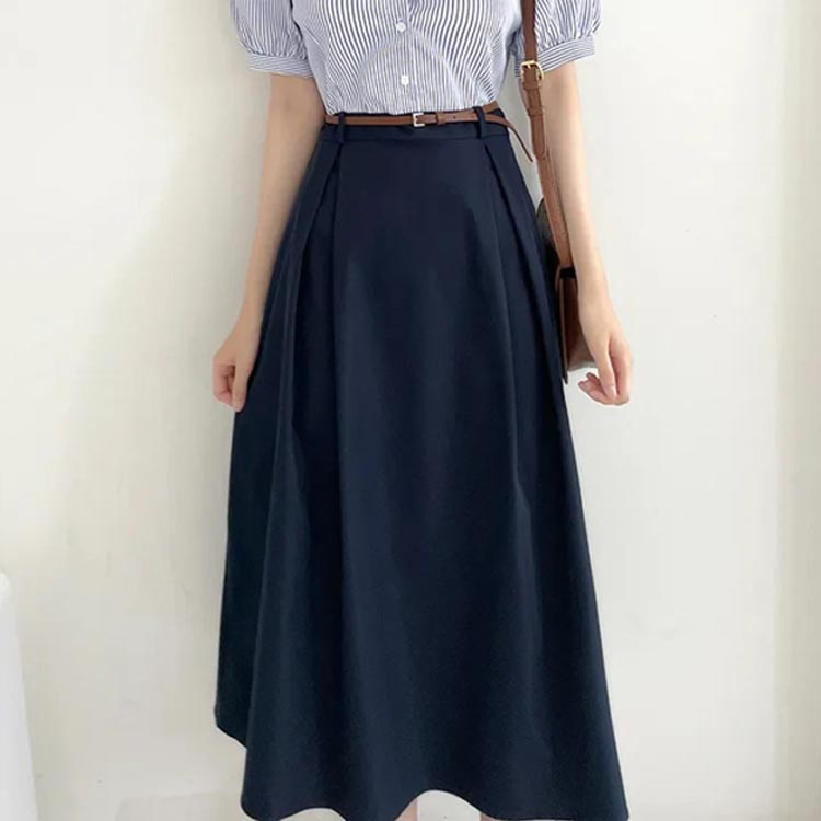 ストライプ柄シャツにスカートを合わせたようなセパレート風デザインのワンピース。