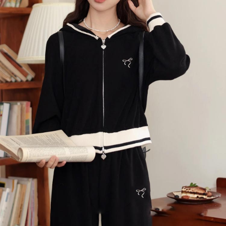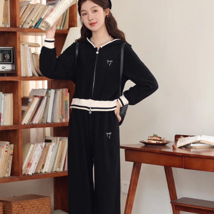チャーム 秋服 ナイトウェア 大きいサイズ ズボン トップス セット ジップアップパーカーセットアップ シンプル フード ジップアップ 上下セット スポーツ ルーム ウエストゴ ポケット