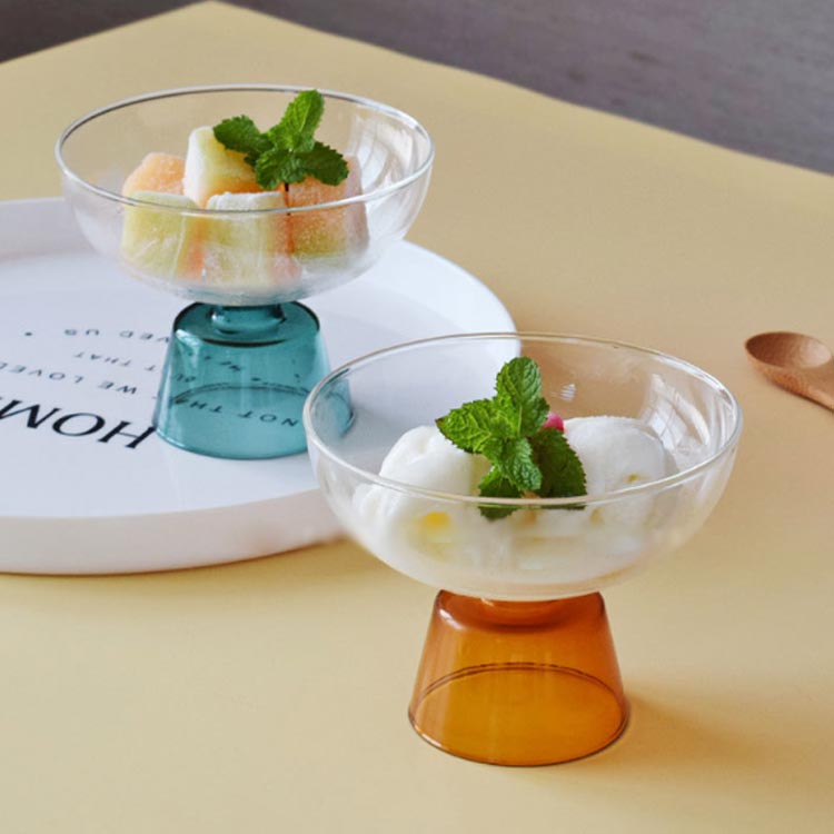 ポップなカラーがレトロ感を感じさせる、かわいいガラスのアイスカップ。