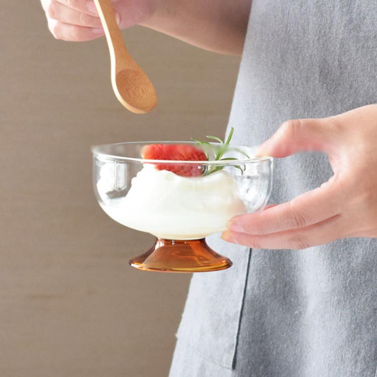 ポップなカラーがレトロ感を感じさせる、かわいいガラスのアイスカップ。