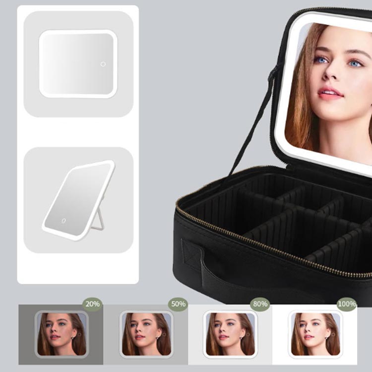 【サイズ】ボックス:260mm*230mm*100mmミラー:236mm*206mm*120mm重さ:約1.2kgバッテリー容量:800/2000mAh【商品内容】・メイクボックス本体×1・ブラシ収納袋×1・仕切り板×6(大1枚、中2枚、小3枚)・USB充電コード×1※商品のサイズは手作業で測定させて頂いておりますので、若干の誤差があります。
