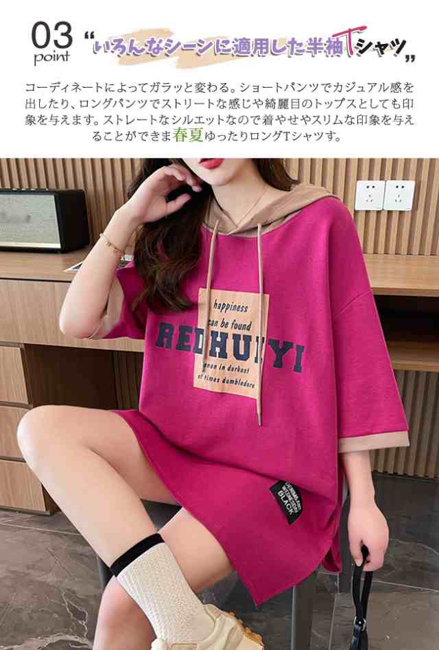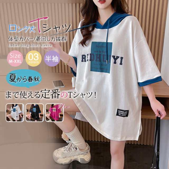 半袖Tシャツ レディース ロング丈tシ トップス Tシャツ カットソー 特集 ホワイト ブラック ローズ M L XL XXL
