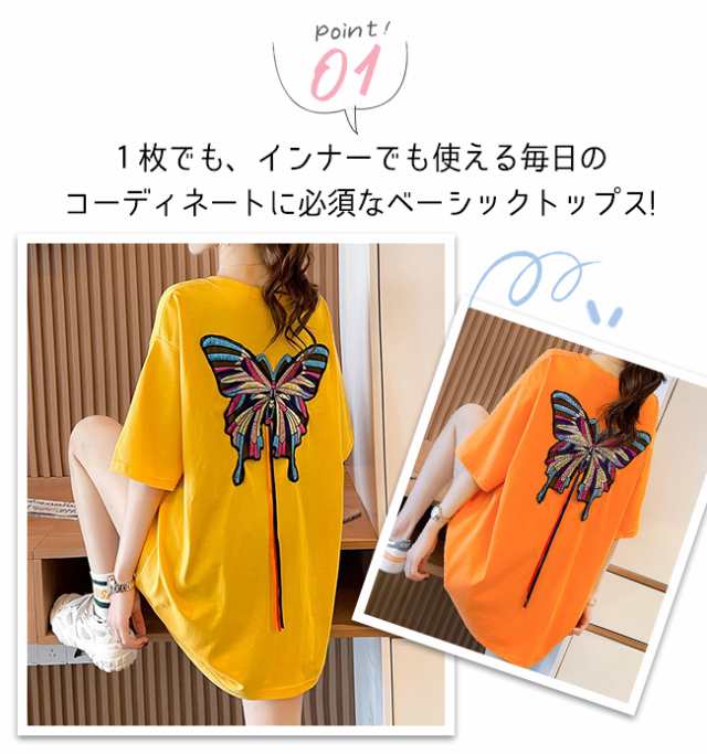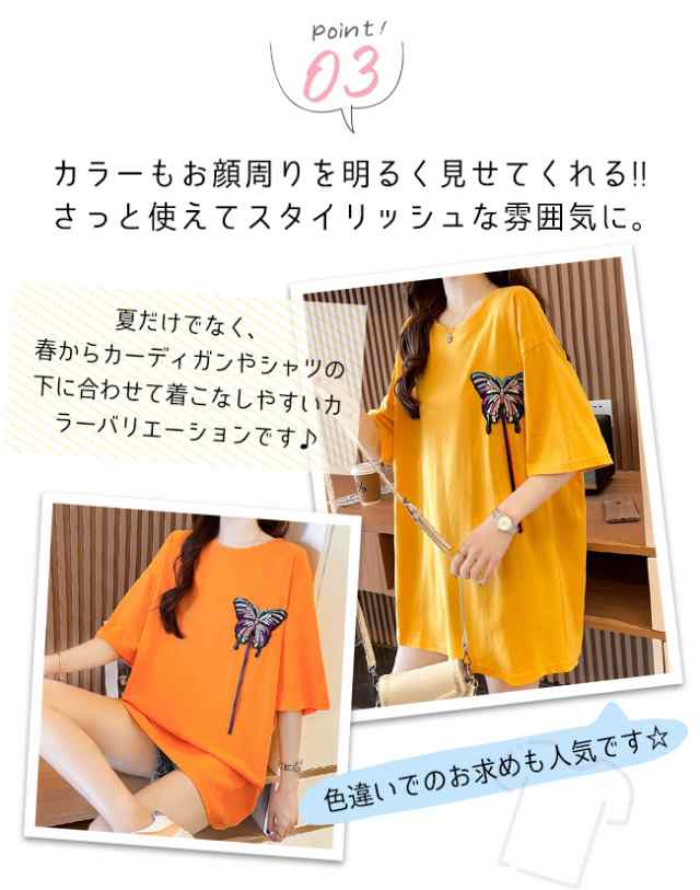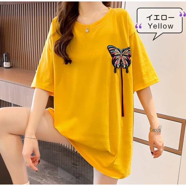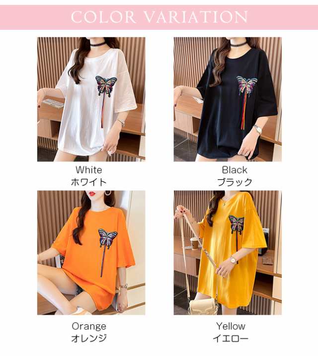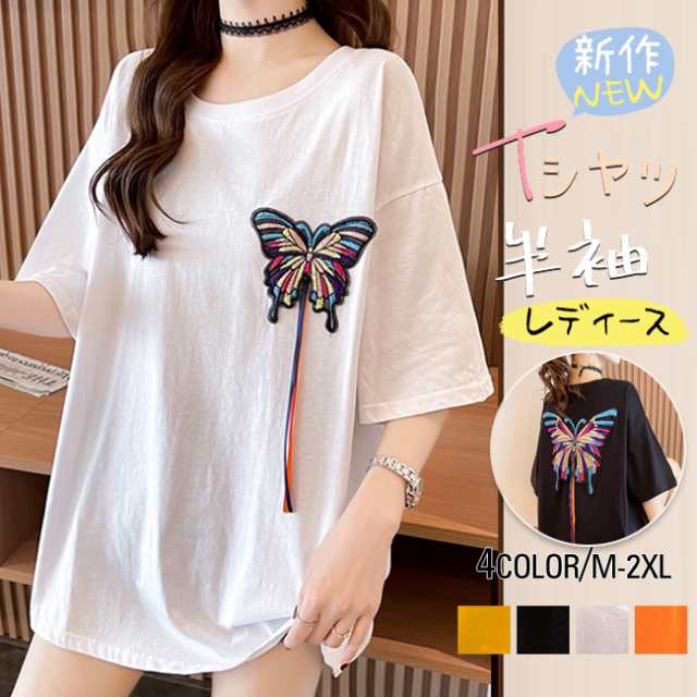 夏新作 Tシャツ半袖 レディース 半袖 トップス Tシャツ カットソー 人気 ブラック ホワイト イエロー オレンジ M L XL XXL