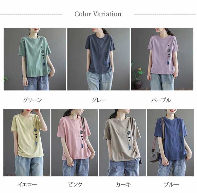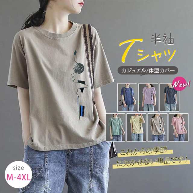 夏新作 半袖tシャツ レディース Tシ レディースファッション 特集 グリーン グレー パープル イエロー ピンク カーキ ブルー M L XL XXL 3XL 4XL
