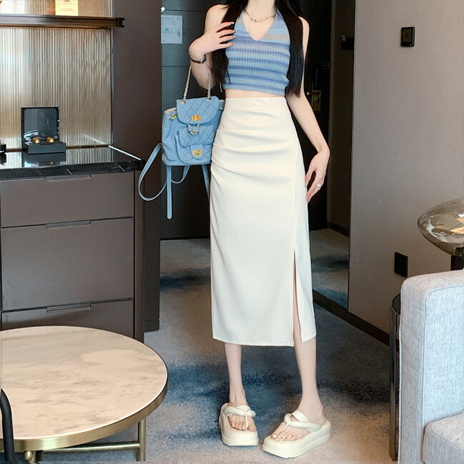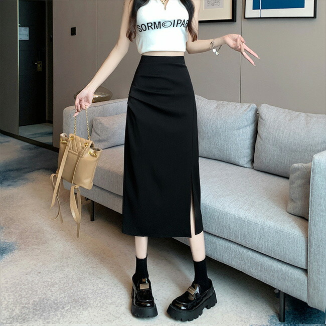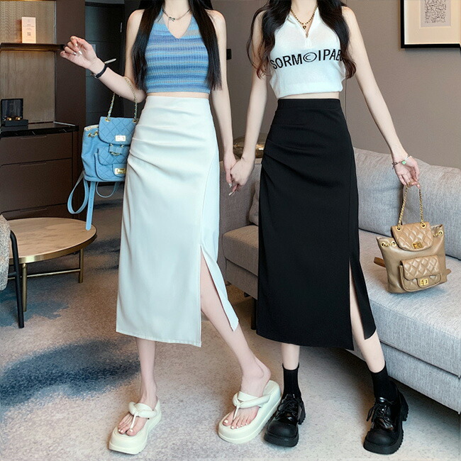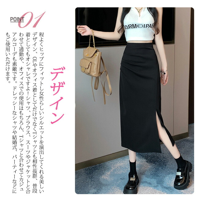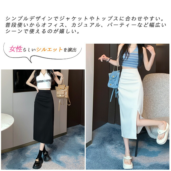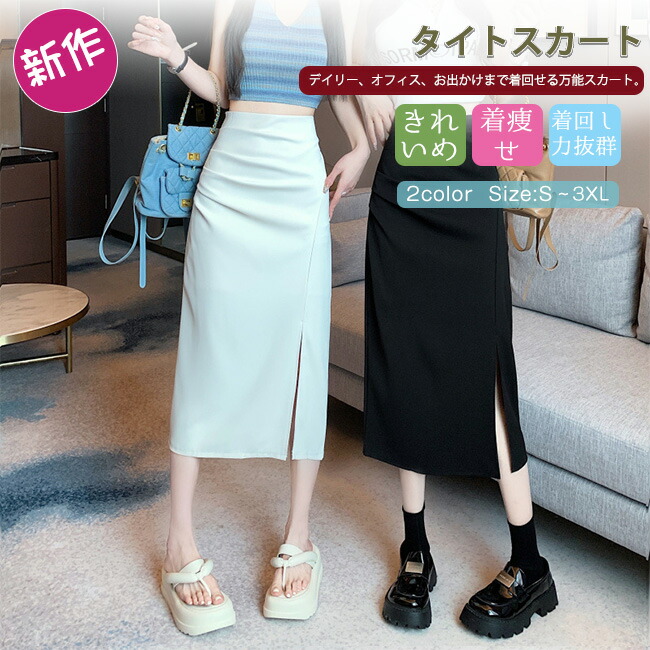 タイトスカート スリット ロングスカー ボトムス スカート 人気 ブラック オフホワイト S M L XL XXL 3XL