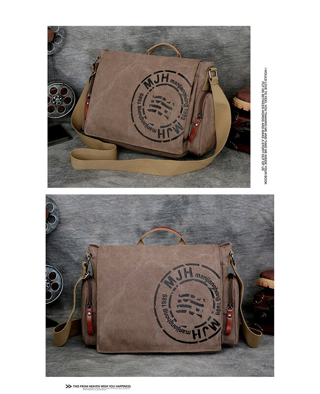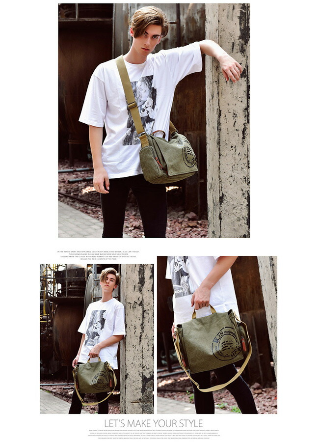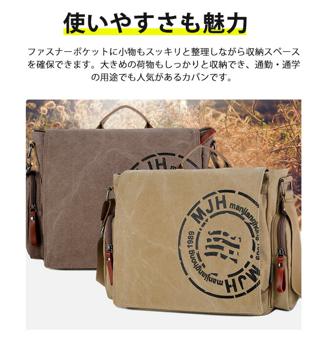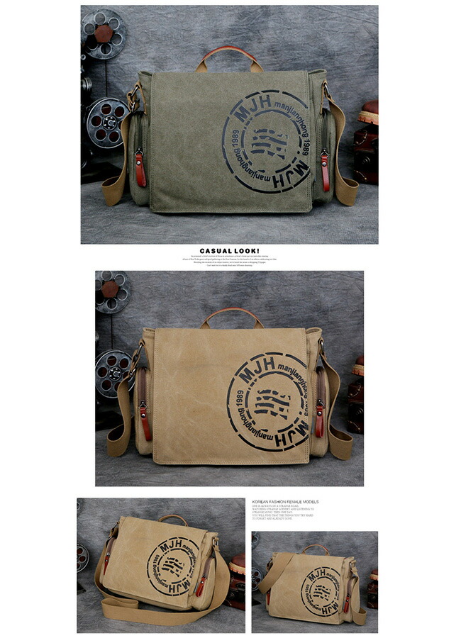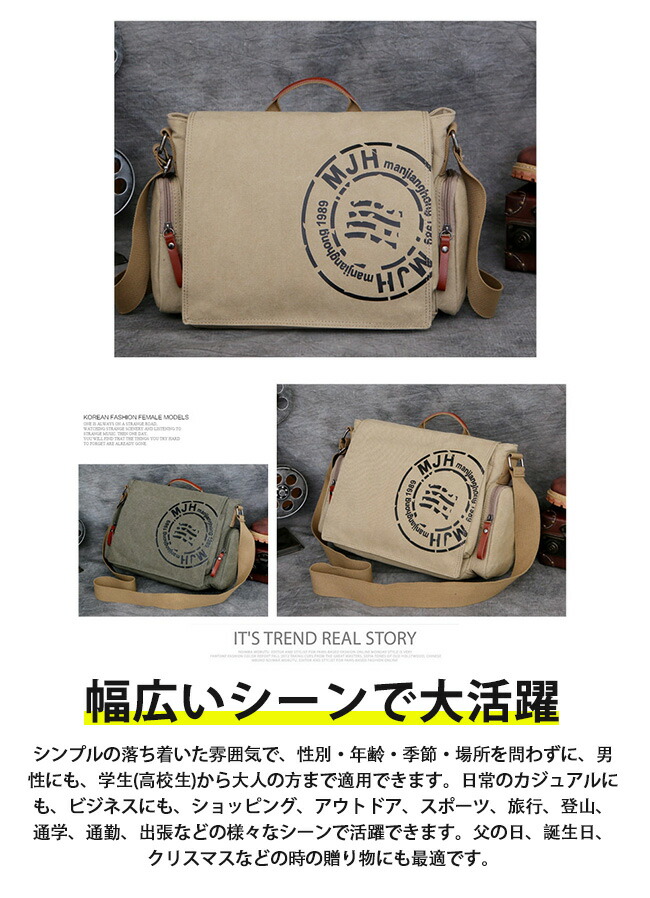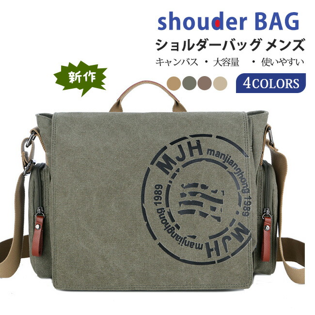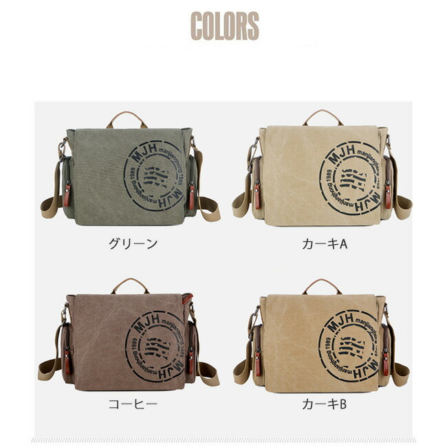 ショルダーバッグ メンズ キャンバス バッグ 小物 ブランド雑貨 続々登場 グリーン カーキA コーヒー カーキB