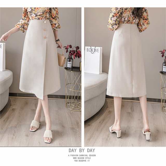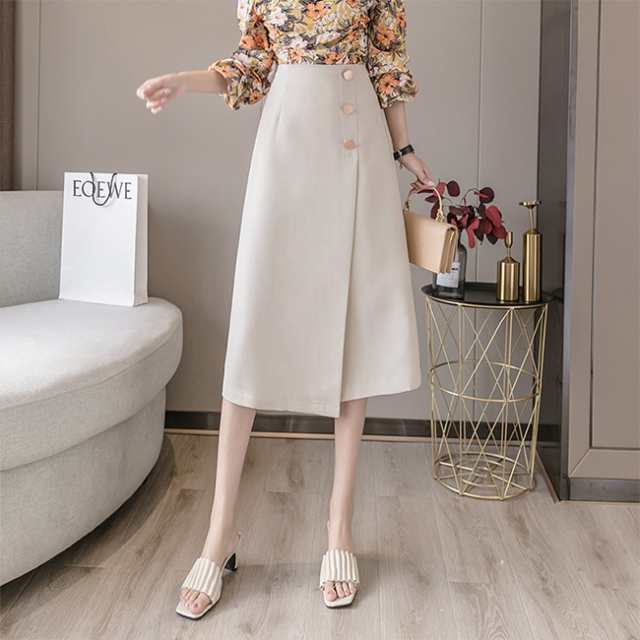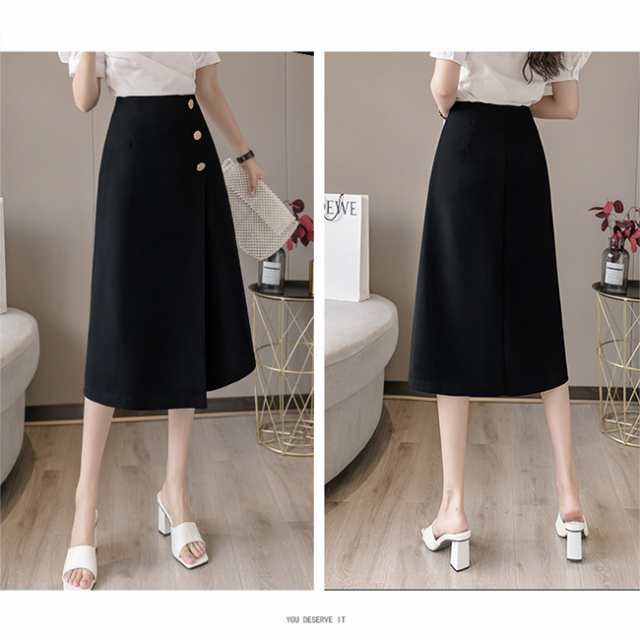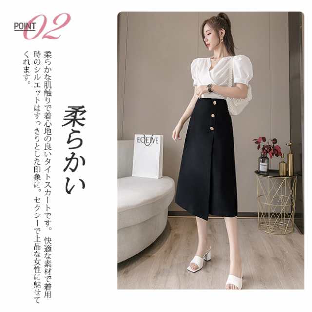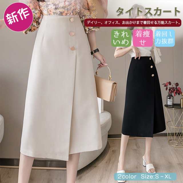 タイトスカート ミドル丈 膝下 細身 レディースファッション 人気 ブラック オフホワイト S M L XL
