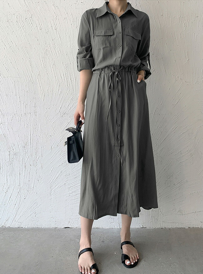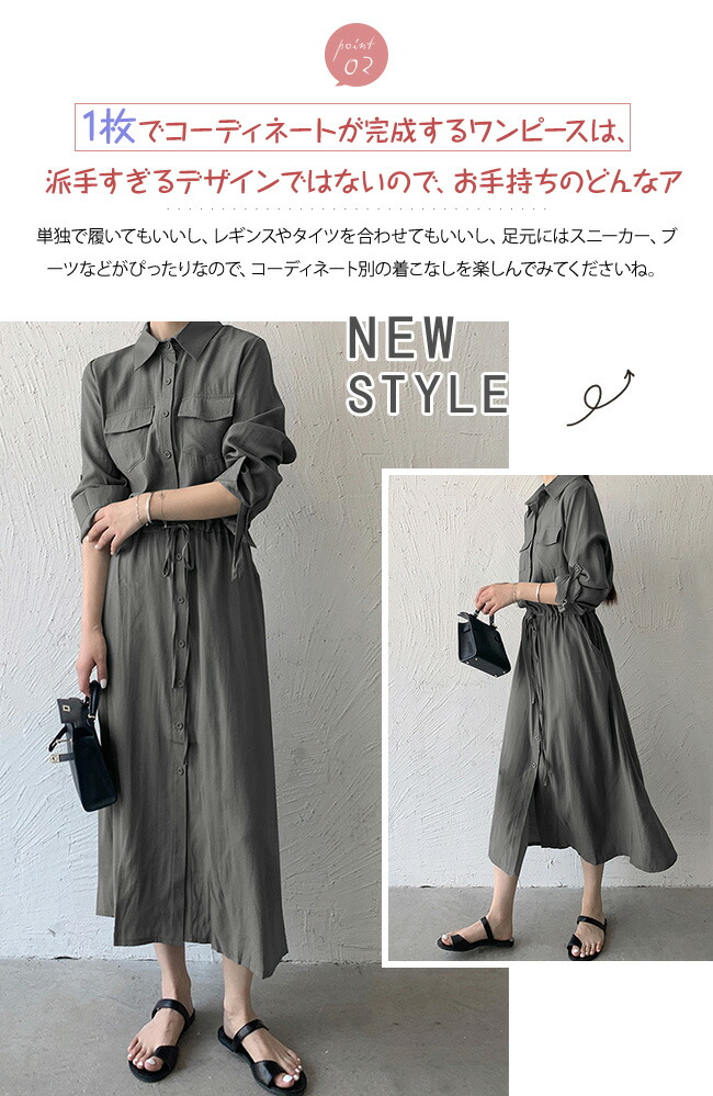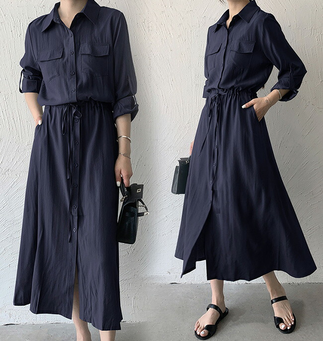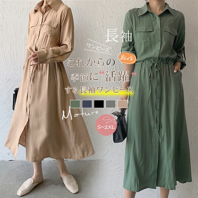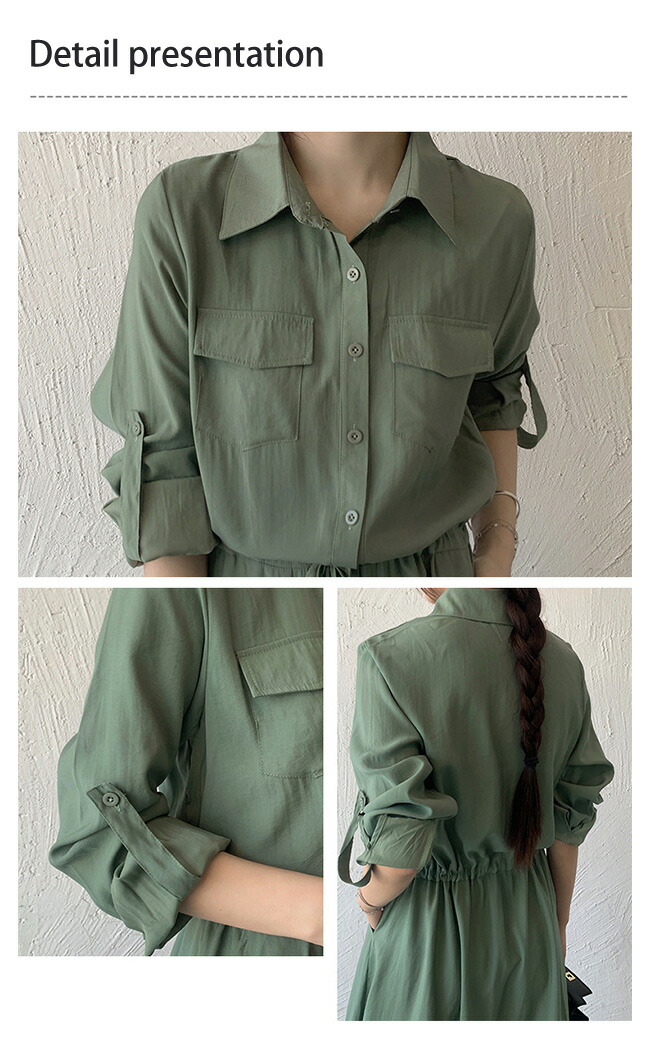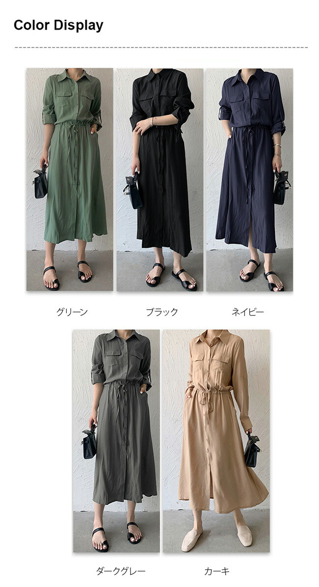 シャツワンピース レディース ロングワ レディースファッション 新登場! グリーン ブラック カーキ ネイビー ダークグレー S M L XL XXL