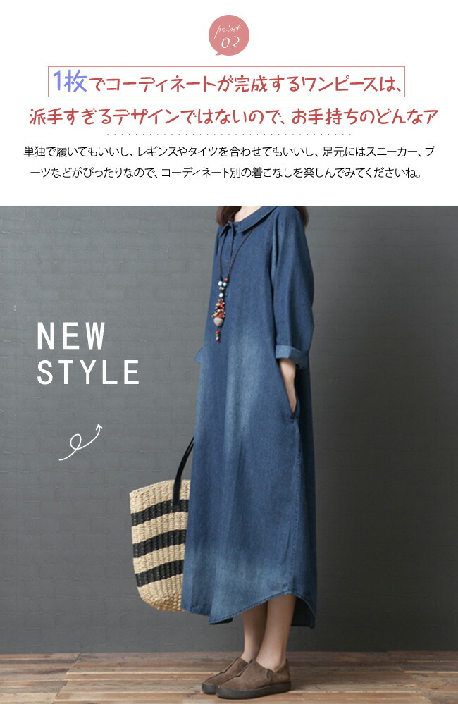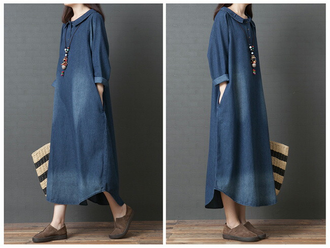 デニム ロングワンピース レディース ワンピース 続々登場 ブラック ブルー M L XL XXL