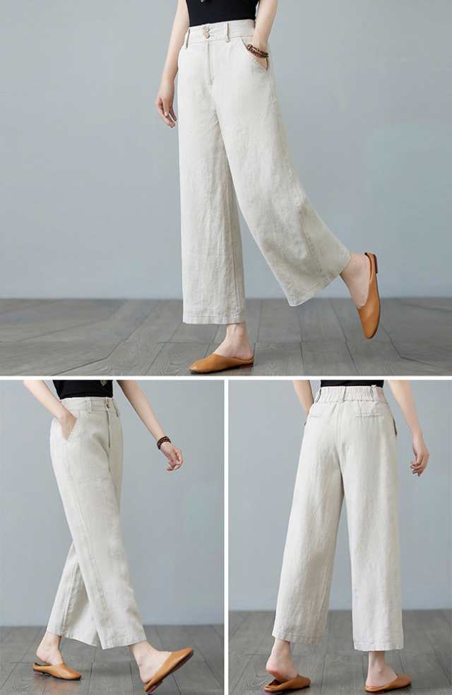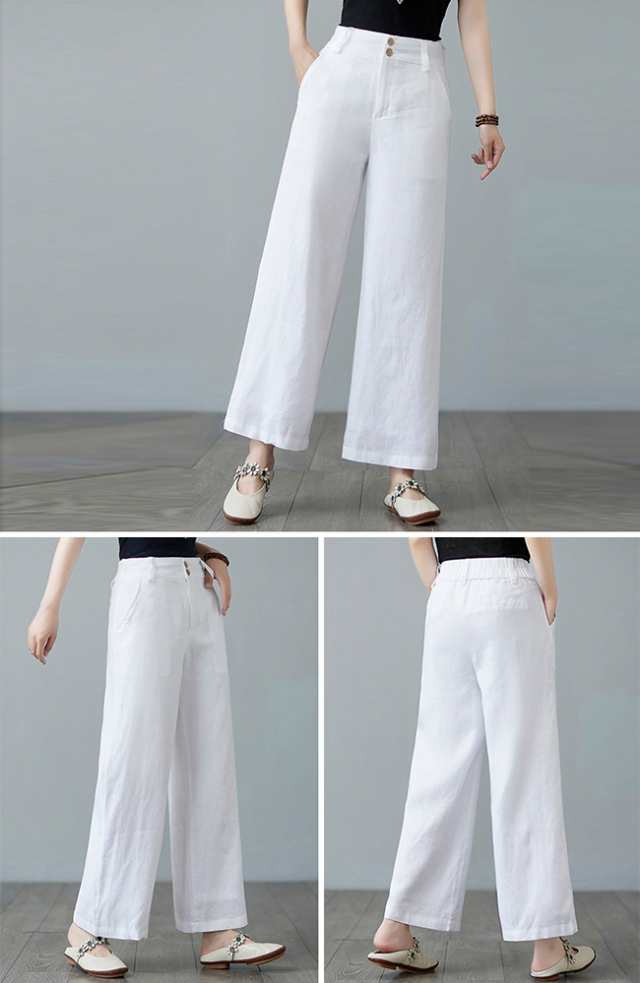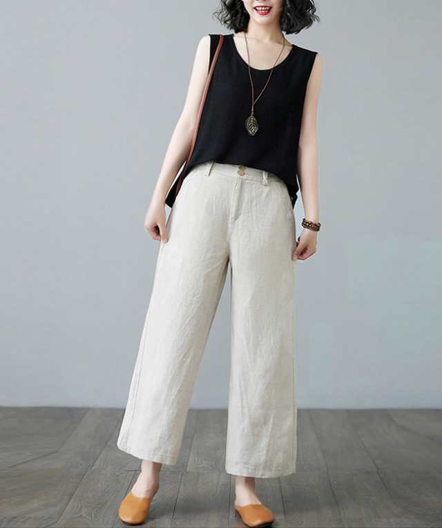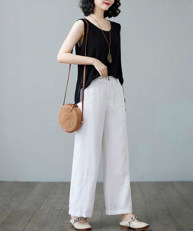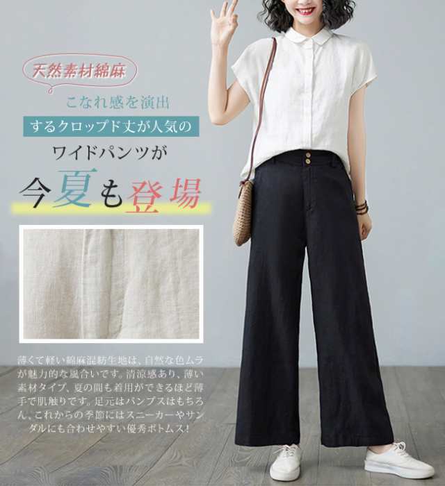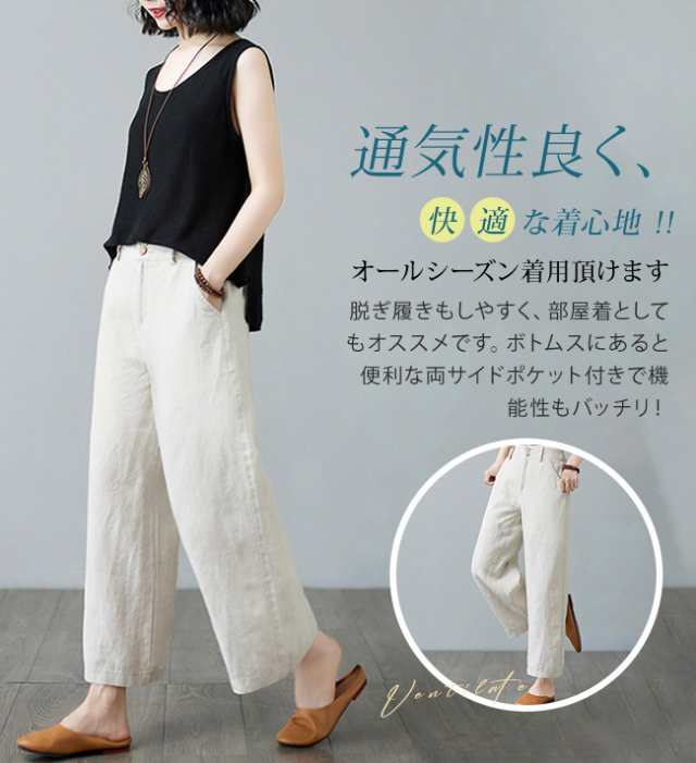 綿麻ワイドパンツ レディース リネンワ ボトムス パンツ 超目玉商品 ホワイト ブラック ベージュ M L XL XXL