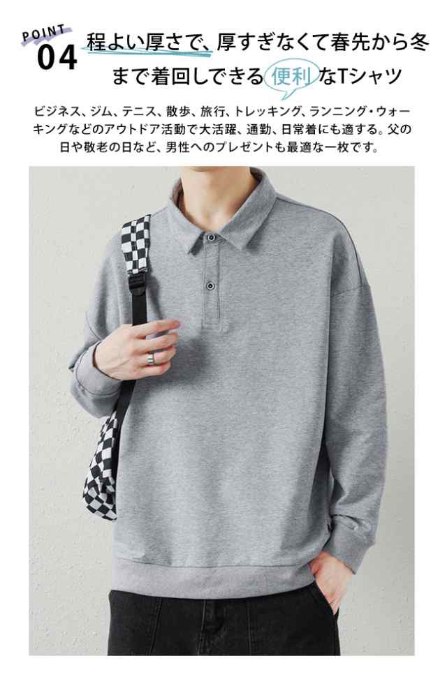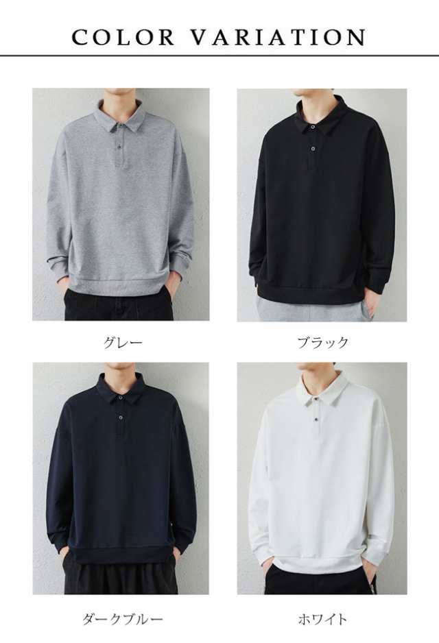 長袖 ポロシャツ メンズ 秋服 Tシャ メンズファッション 特集 ホワイト ブラック グレー ダークブルー M L XL XXL 3XL 4XL