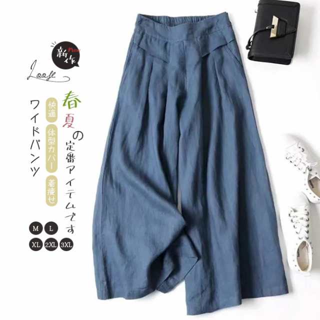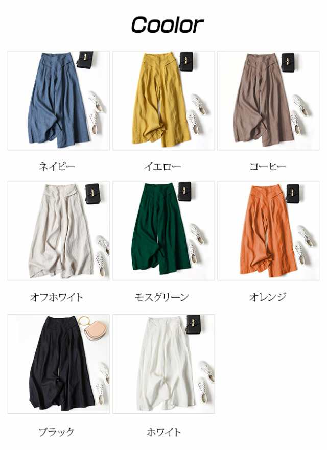 ワイドパンツ レディース ガウチョパン レディースファッション 超目玉商品 ネイビー イエロー コーヒー オフホワイト モスグリーン オレンジ ブラック ホワイト M L XL XXL 3XL