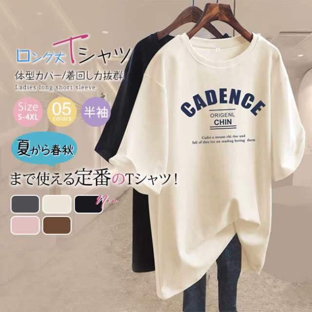 tシャツ レディース 半袖 ロング丈 レディースファッション 人気 グレー オフホワイト ピンク コーヒー ブラック S M L XL XXL 3XL 4XL