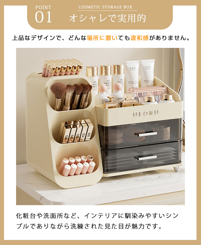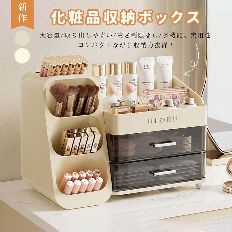 化粧品収納ボックス 化粧品収納ラック オフホワイト ホワイト