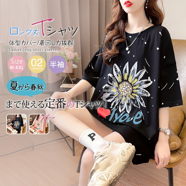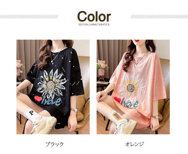 ロンT ロングtシャツ レディース 半 レディースファッション 通販 ブラック オレンジ M L XL XXL