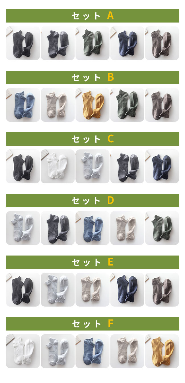 靴下 メンズ くるぶしソックス メッシ メンズ 靴下 レッグウェア 靴下 新作 セットA セットB セットC セットD セットE セットF ブラック*5 ホワイト*5
