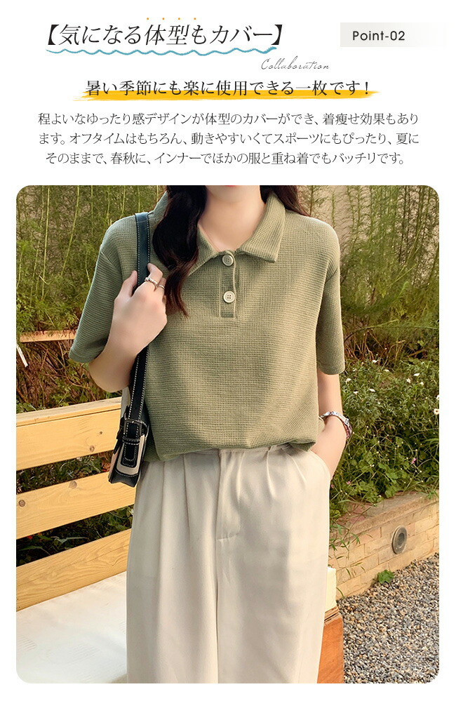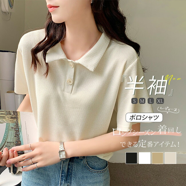 ポロシャツ レディース Tシャツ トッ トップス ポロシャツ 特集 グリーン ブラック ホワイト ベージュ S M L XL