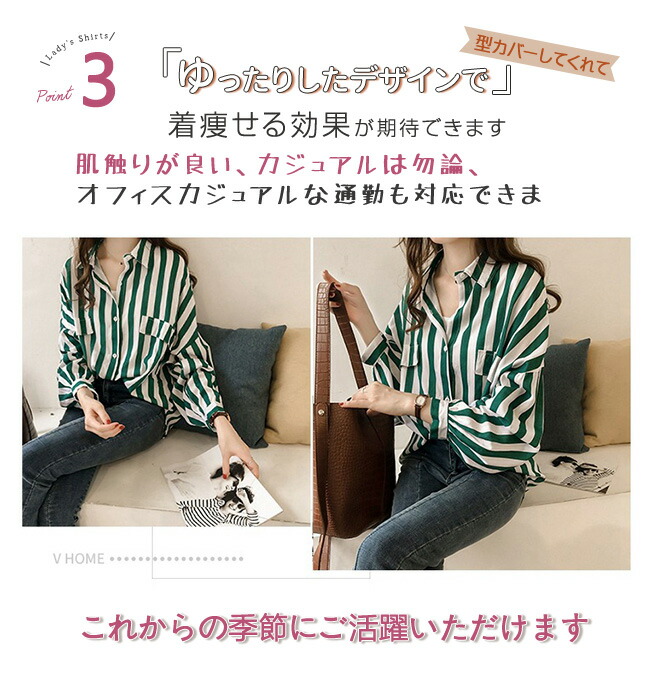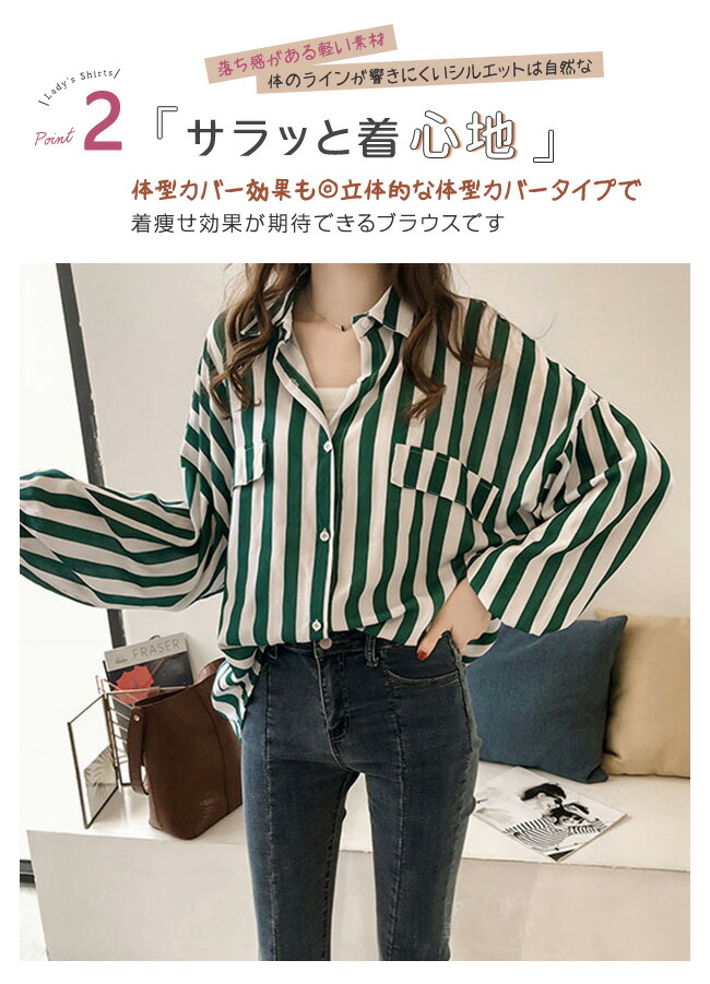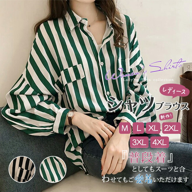 ボーダー 長袖シャツ レディース シャ レディースファッション 超目玉商品 ブラック グリーン M L XL XXL 3XL 4XL