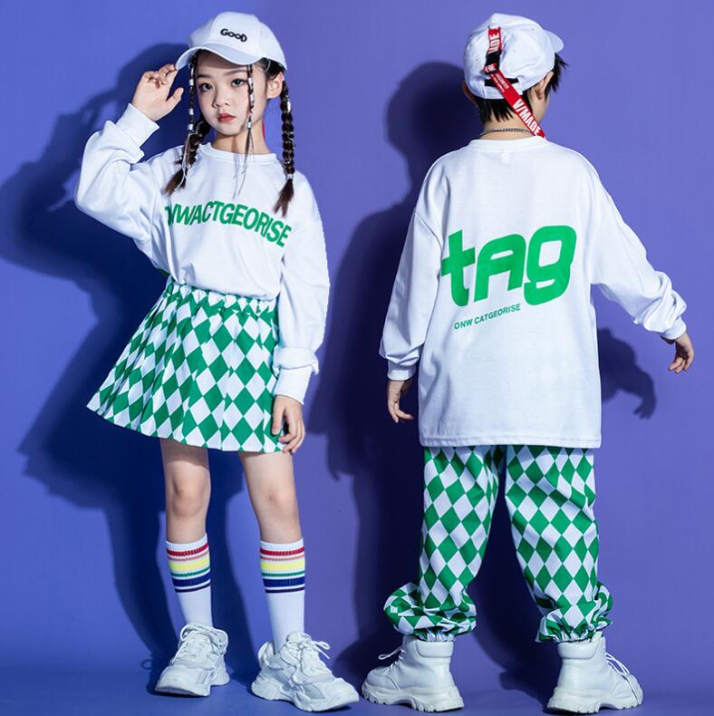 キッズダンス衣装 オーバーサイズパーカー サルエルパンツ チェック柄 男女兼用 キッズジャズ ヒップホップ 子供服 上下セット 派手 K-POP ストリート 原宿系 レッスンダンスウェア イベント 発表会 応援団 jazz hiphop ステージ舞台演出服 練習着 チーム衣装 おしゃれ団体服