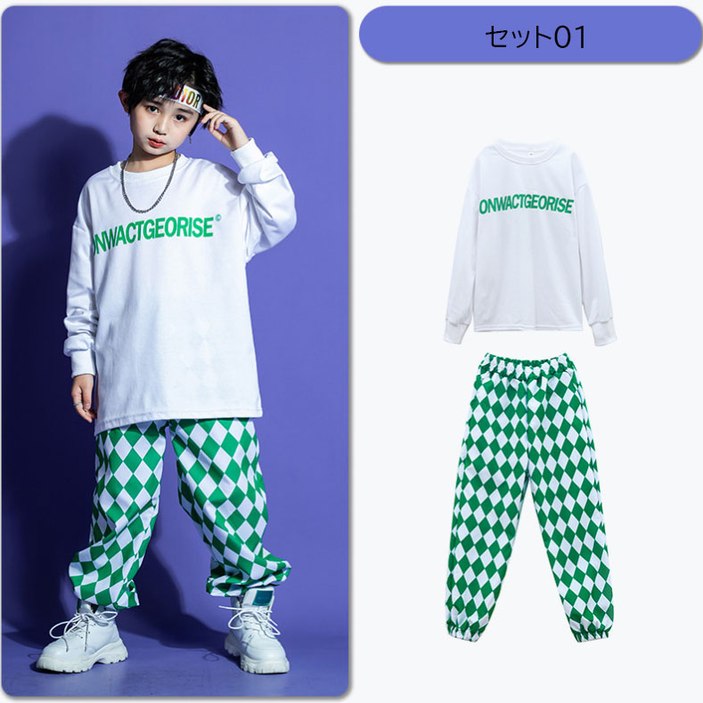 キッズダンス衣装 オーバーサイズパーカー サルエルパンツ チェック柄 男女兼用 キッズジャズ ヒップホップ 子供服 上下セット 派手 K-POP