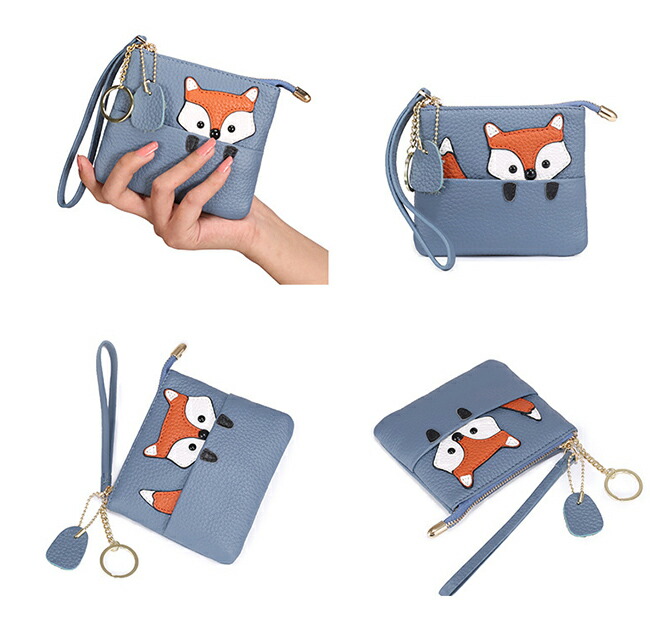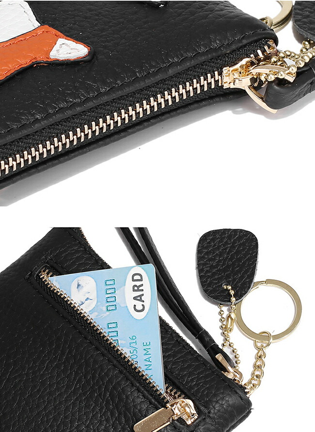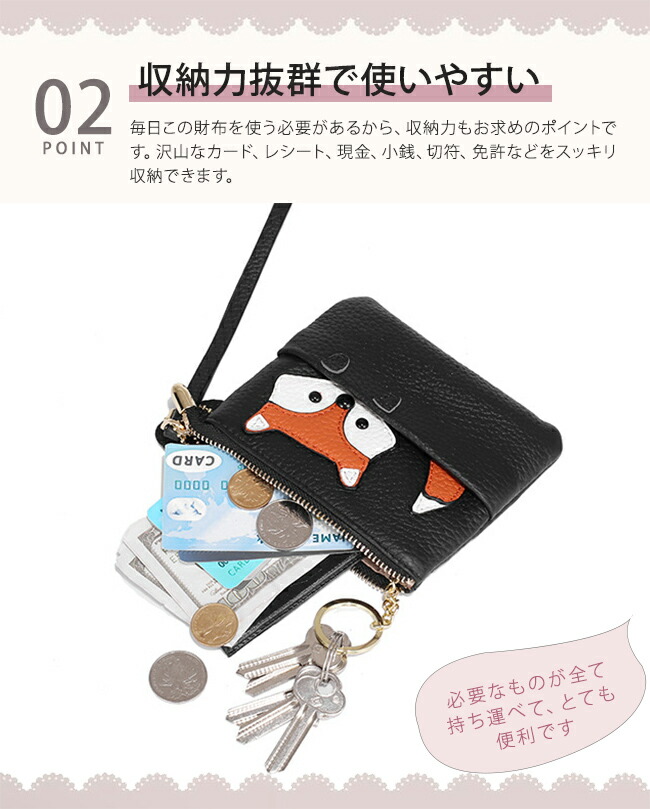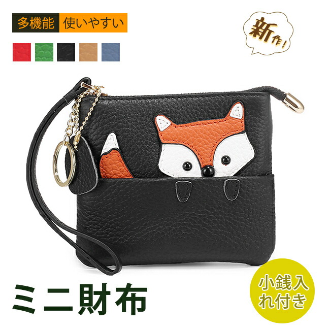 新作 小銭入れ レディース コインケース ミニ財布 可愛いきつね柄 牛革 コンパクト 手持ち キーリング付き 一粒万倍日 天赦日 プレゼント 薄型