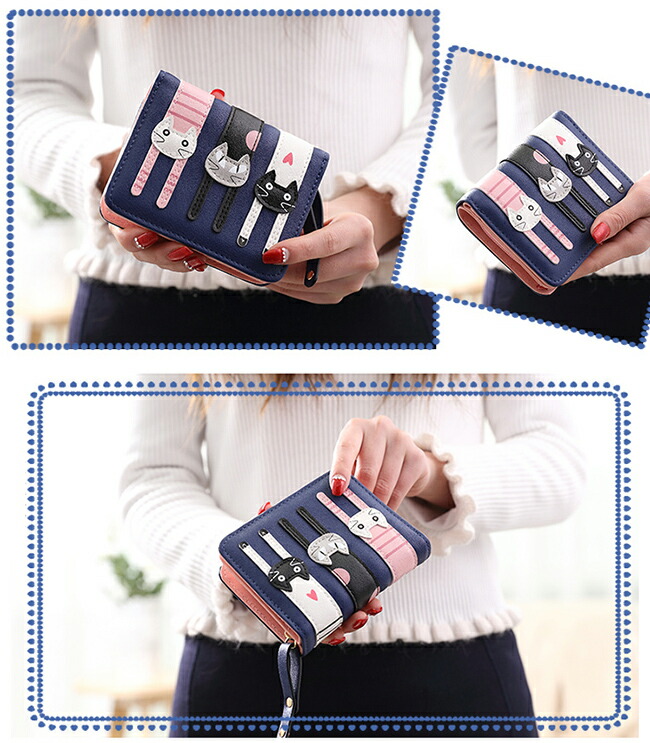 新作 財布 レディース 2つ折り 人気 二つ折り財布 可愛い猫柄 コンパクトさいふ ミドル財布 小銭入れにカード入れ付き 一粒万倍日 天赦日 プレゼント ウォレット