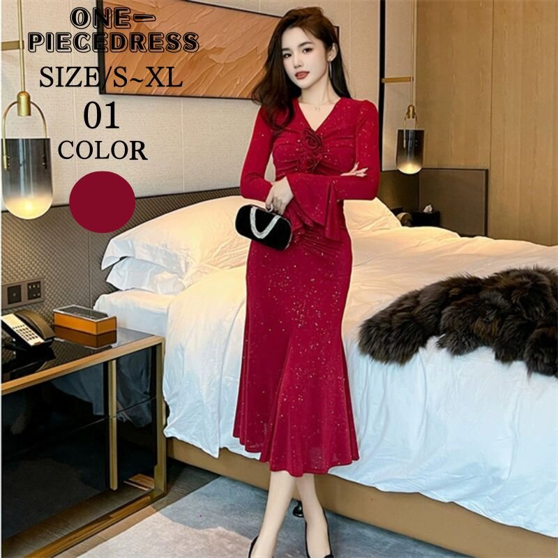 20代から40代の女性に向けたこのドレスは、韓国のトレンドを取り入れた姫系スタイルで、セクシーさときれいめな印象を両立します。