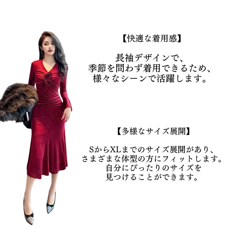 フェミニンでセクシーな雰囲気を持ちつつ、上品さを兼ね備えたこのドレスは、20代から40代の女性にぴったりです。