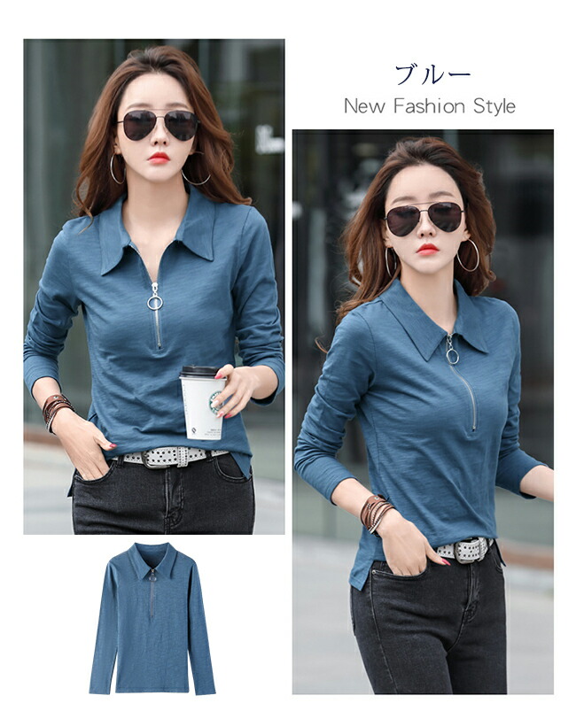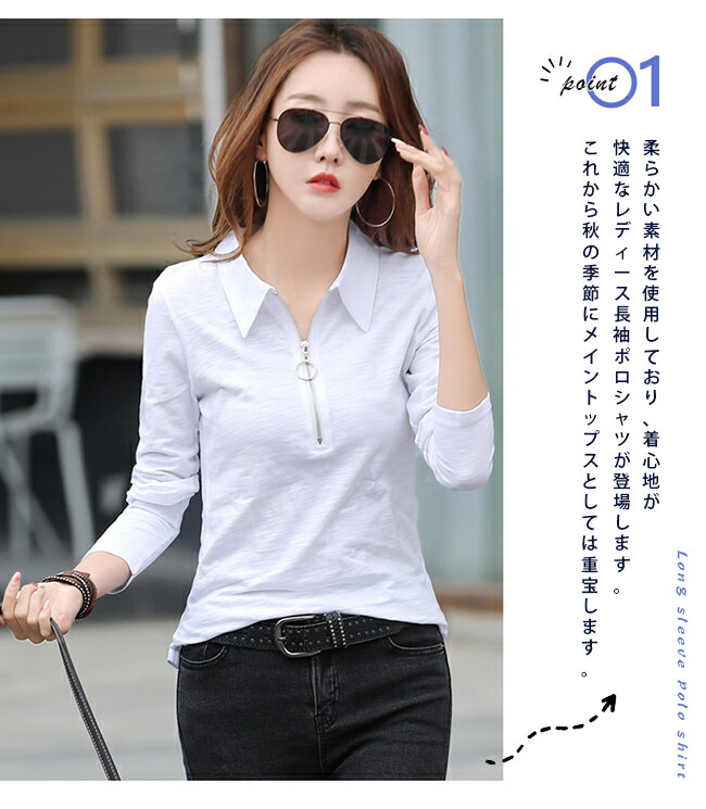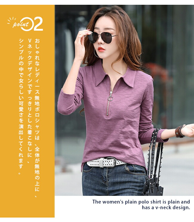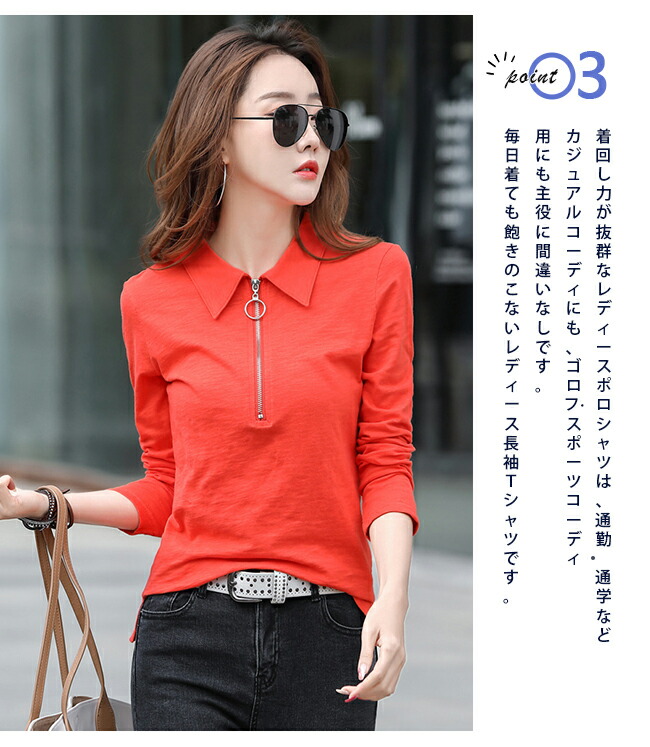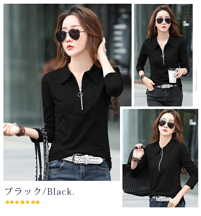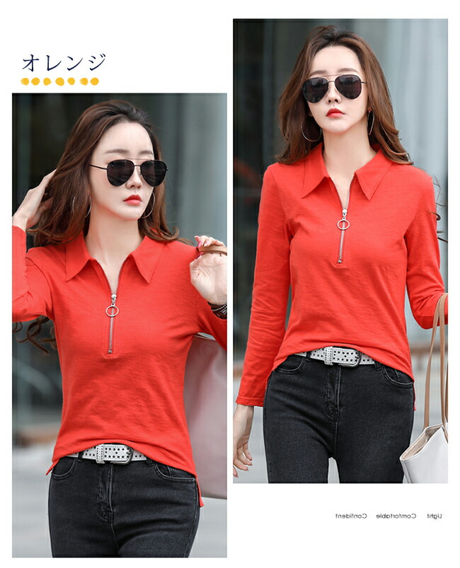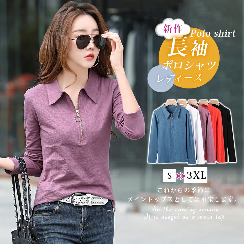 ポロシャツ レディース 長袖 Tシャツ レディースファッション 通販 ブラック パープル ホワイト ブルー オレンジ S M L XL XXL 3XL