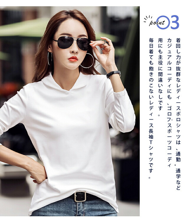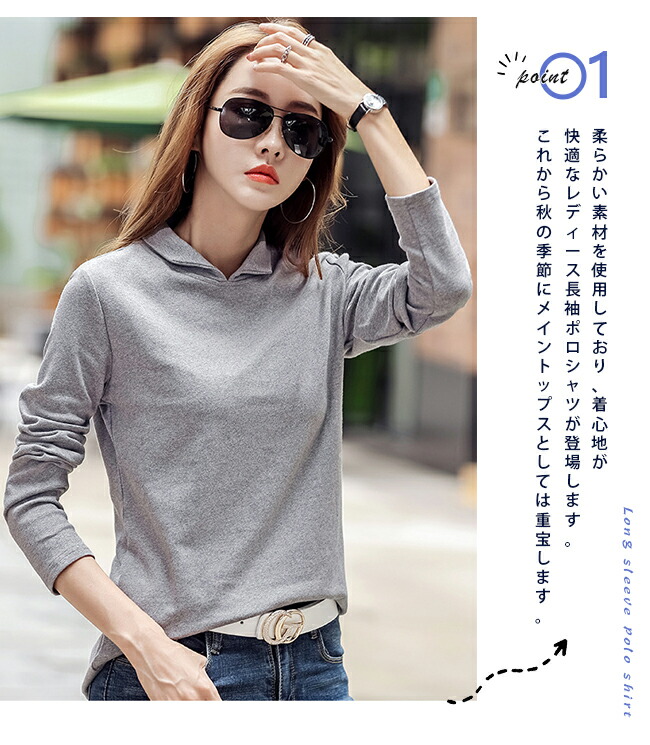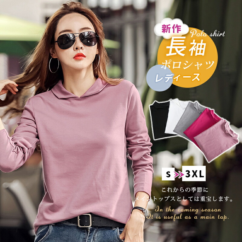 ポロシャツ レディース 長袖 綿 tシ レディースファッション 人気 ブラック ホワイト グレー ピンク S M L XL XXL 3XL