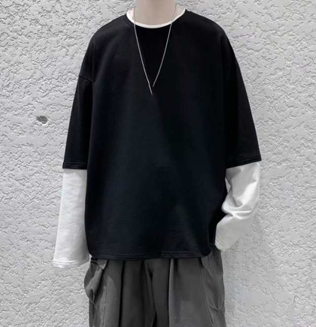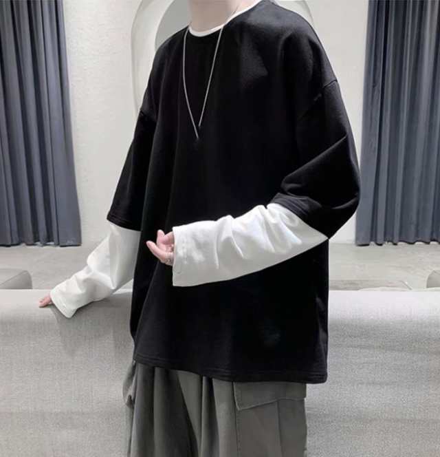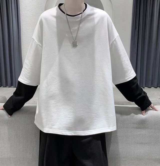 長袖Tシャツ メンズ tシャツ長袖 大きいサイズ 重ね着風 レイヤード 無地 ゆったり 柔らか ビッグシルエット コットン 肌着 トップス カジュアル