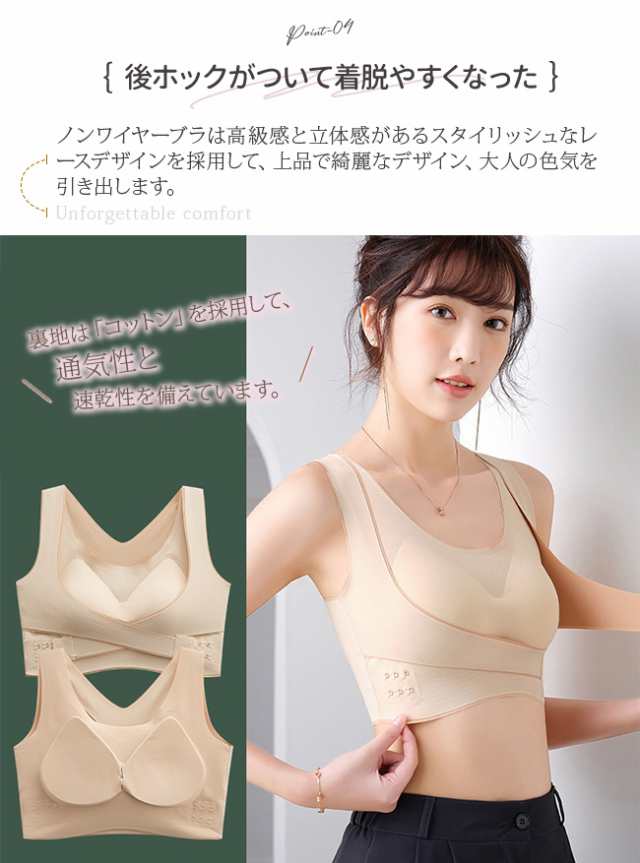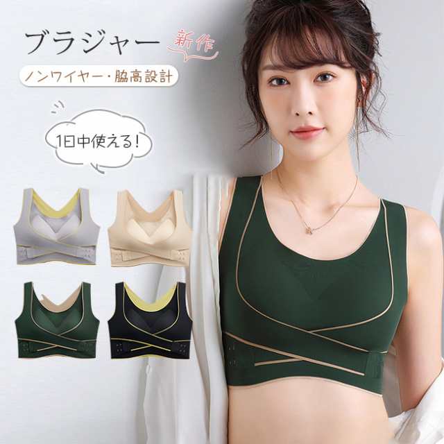 ブラジャー ノンワイヤー 脇高 補正ブ インナー 下着 ナイトウエア 通販 ブラック モスグリーン グレー ベージュ M L XL XXL
